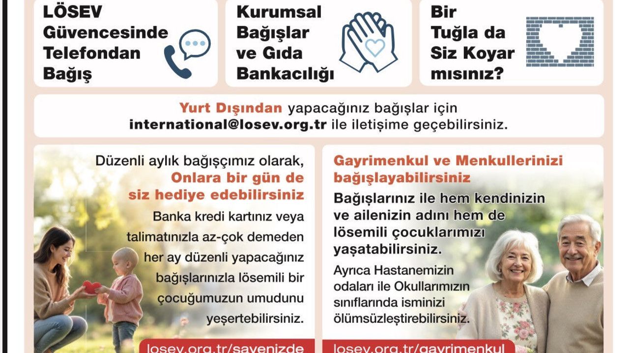Türkiye’nin en güvenilen sivil toplum kuruluşlarından biri olan LÖSEV, yayımladığı bilgilendirme broşürü ile "Lösemili bir çocuğun umudunu yeşertmek" isteyen vatandaşlara yol gösteriyor. Sadece hastalıkla değil, aynı zamanda yoksullukla da mücadele eden ailelere el uzatan vakıf, bağışların şeffaf ve titiz bir şekilde ihtiyaç sahiplerine ulaştırıldığını vurguluyor.